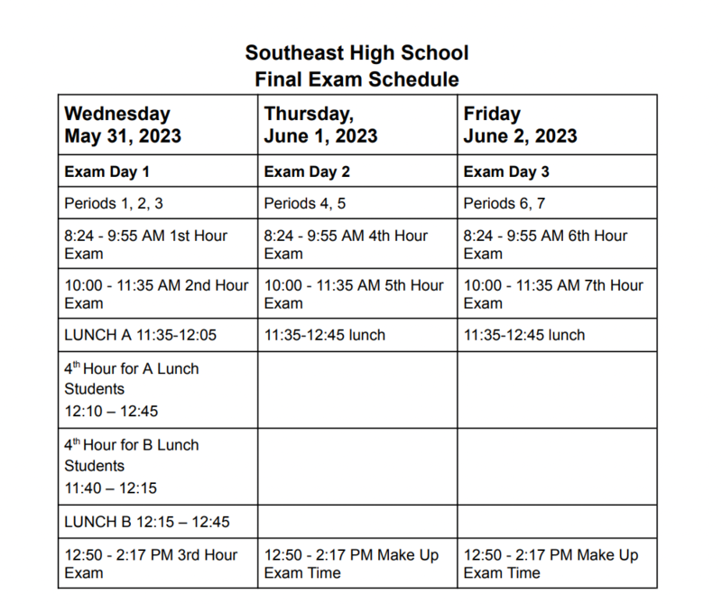 Good Morning Southeast students and staff, it's the last day of Tuesday May 31, 2023! Remember that successful Spartans ARE RESPECTFUL, they follow classroom and school wide expectations and allow for learning throughout the building.